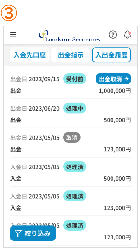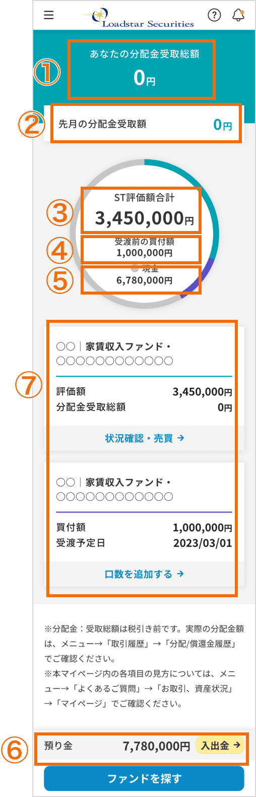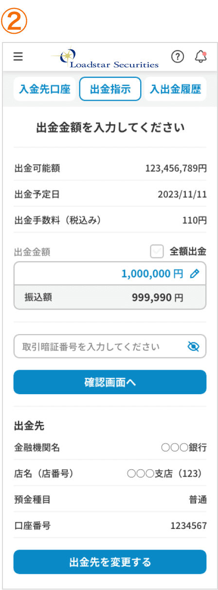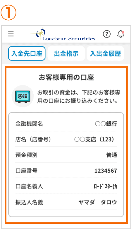 ご入金いただくための、お客様専用の口座情報をご確認いただけます。